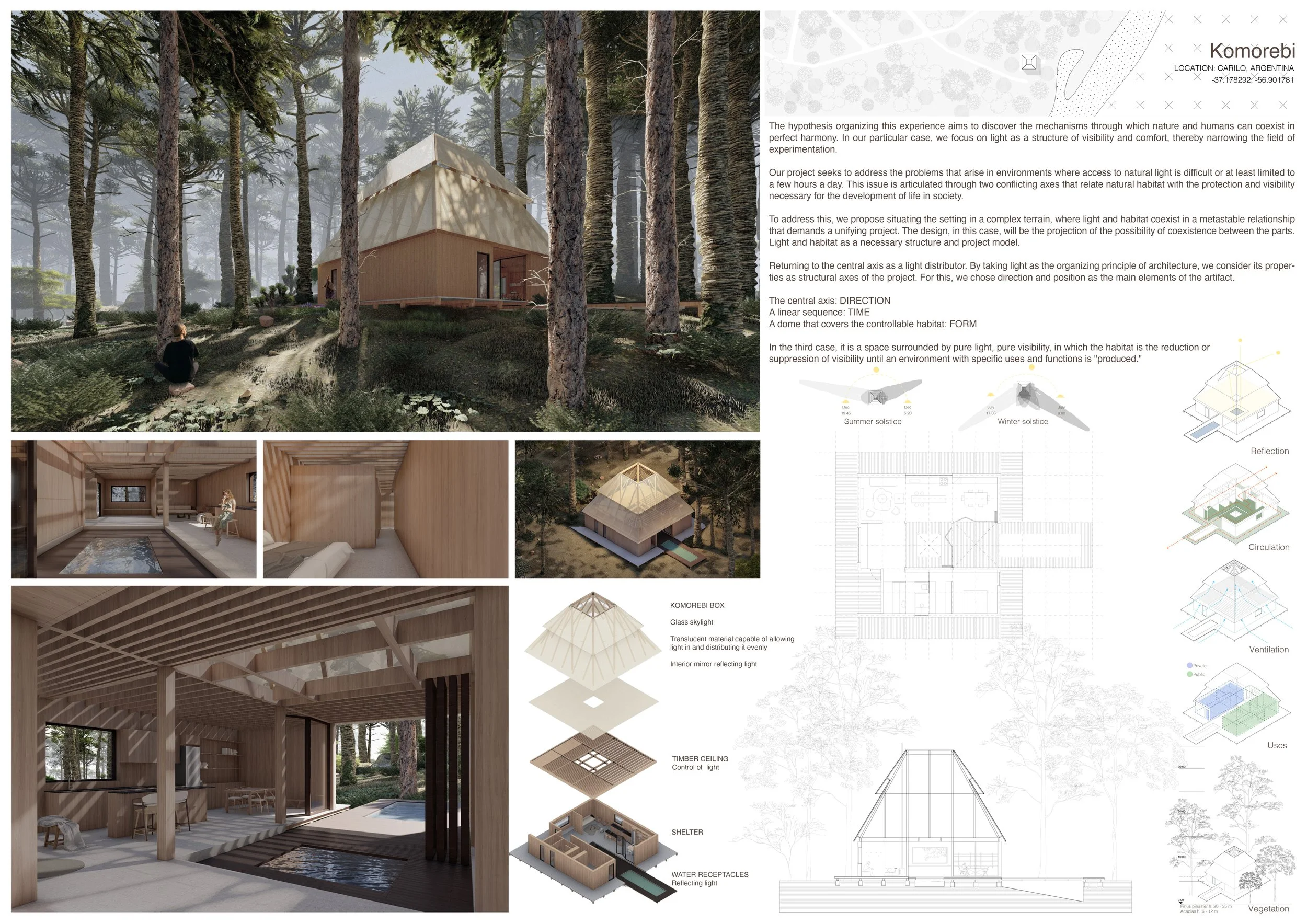 Our project seeks to address the problems that arise in environments where access to natural light is difficult or at least limited to a few hours a day. This issue is articulated through two conflicting axes that relate natural habitat with the protection and visibility necessary for the development of life in society.
